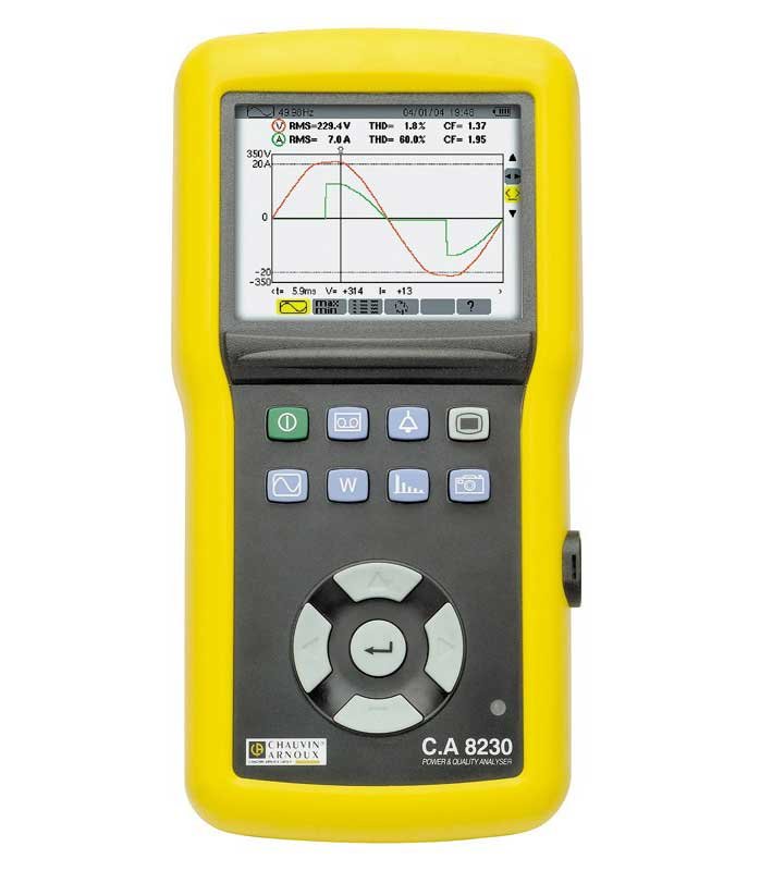 The Chauvin CA8230 single-phase or balanced three-phase power analyser is economical and extremely easy to use. Equipped with direct access to its various functions, it provides greater safety as it automatically recognises the type of connected sensor. It is ideal for on-site or bench-top use.