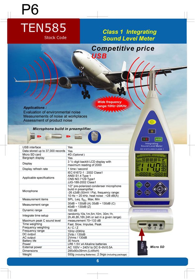 - Measurement range: 30dB~130dB.