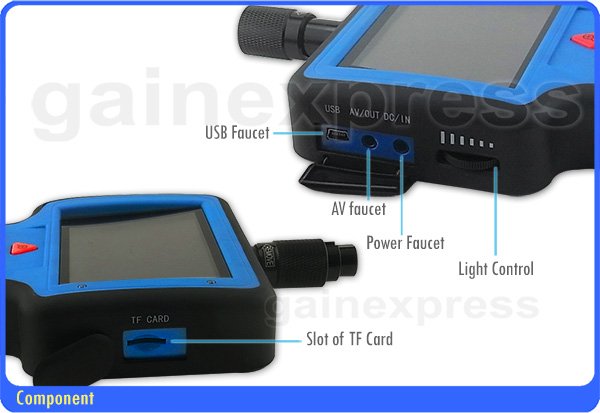 Increase your visibility with digital 6x image zoom capacity and high quality 3.5"TFT-LCD monitor powered by built-in rechargeable battery that can be used up to 4 hours. Brightness of LED lights on camera head is adjustable. Hook, mirror and magnet are included.