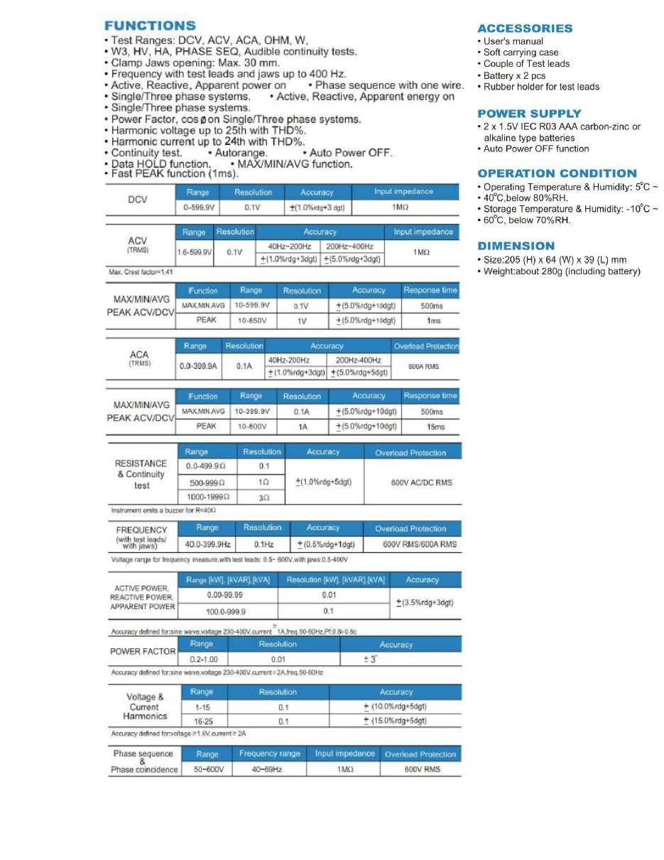 TEN010-TM-1017V3 400A TRUE-RMS AC POWER CLAMP METER + PHASE ROTATION