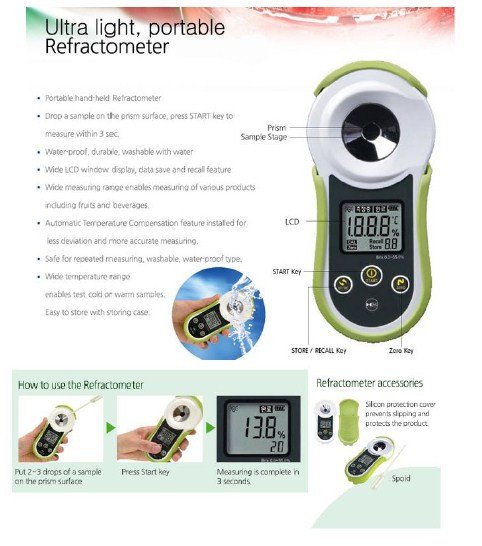 Temperature/Brix readings in 3 seconds for all products ATA0028B- Ultra-light Digital Brix Refractometer